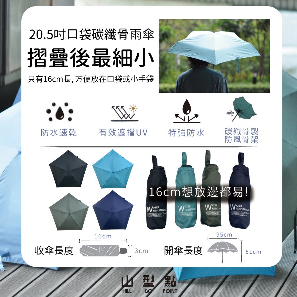 SHH - 20.5" 口袋碳纖5骨雨傘 - 125g